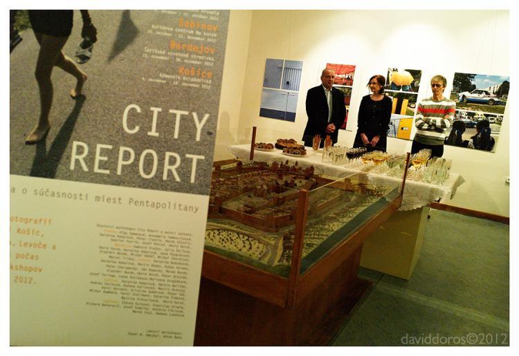 Výstava City Report vznikla v lete počas piatich víkendov na fotografických workshopoch, ktoré sa konali v Košiciach, Prešove, Bardejove, Levoči a Sabinove. Zúčastnilo sa ich takmer 50 fotografov zo všetkých miest. Výstava prezentuje výber ich dokumentárnych a reportážnych fotografií. V Sabinove bude sprístupnená do 11. novembra, následne sa presunie do Bardejova a do Košíc.